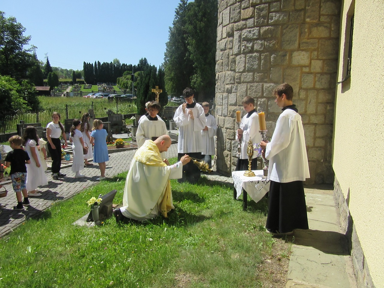 22.06.2025 07:40O svátku Božího Těla jsme vyprošovali Boží požehnání pro farnost, obec a celý svět. V průvodu kolem kostela jsme se zastavili a modlili u čtyř připravených oltářů.